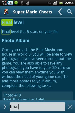 Super Mario Cheats is a thoughtfully designed app providing simple quick and easy access to every cheat code for Super Mario games, on each console/platform.