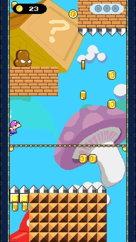 Dalam game ini, Jamur kami indah terus bergerak ke kanan dan ke kiri, Mushroom kami akan mengubah arah secara otomatis setelah berdampak dinding memerintah. Anda dapat menggunakan berbagai lompatan untuk memajukan selama permainan. Hindari musuh tetangga (atau membunuh mereka) sementara Anda mengumpulkan koin rakit dan mencapai tujuan.