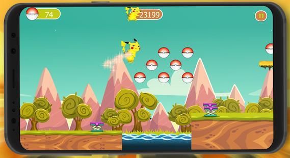 Pressing on your phone or tablet screen to jump in time to make Super pikachu jumps and collects coin and coins to gain strength and also overcome wild monsters and various obstacles in all stages of play.
