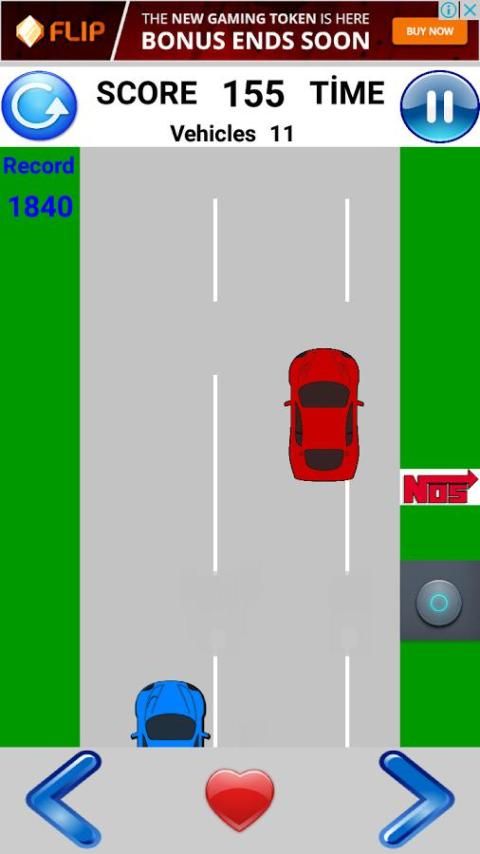 Right side includes Nitros button below the label (NOS) which will increase your speed and if pressed twice will take back the speed to normal.