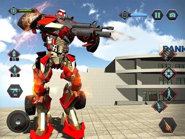 Mencapai titik transformasi dengan skuad perampokan dan cepat mengubah diri Anda dari X robot menjadi sebuah mobil robot baja yang menakjubkan. Pergi kecepatan super robot berkendara mobil dengan skuad perampokan Anda untuk mencapai perampokan tempat dengan cepat. Setelah Anda mencapai bank mulai syuting dengan persenjataan canggih Anda. entrance Bank yang jelas bersama dengan perampokan skuad robot Anda dengan keterampilan yang super luar biasa menembak dan kemudian bergerak dalam bank untuk pencurian. Membunuh dan menembak sebagai marah baja X robot prajurit marah untuk membersihkan jalan Anda. Gunakan semua Anda yang super sniper keterampilan menembak dan membantu tuan perampokan skuad Anda dalam pertempuran marah ini. Menjadi berani setan robot menguasai dan masuk ke ruang ganti untuk menemukan emas dan uang tunai. Mencuri emas dan uang tunai dan keluar dengan mengubah robot ke mobil baja, melarikan diri Bank setelah menyelesaikan misi mencuri dan kembali ke rumah robot Anda dengan sesama gangster. Nikmati simulator ditambah aksi permainan pengalaman shooting.