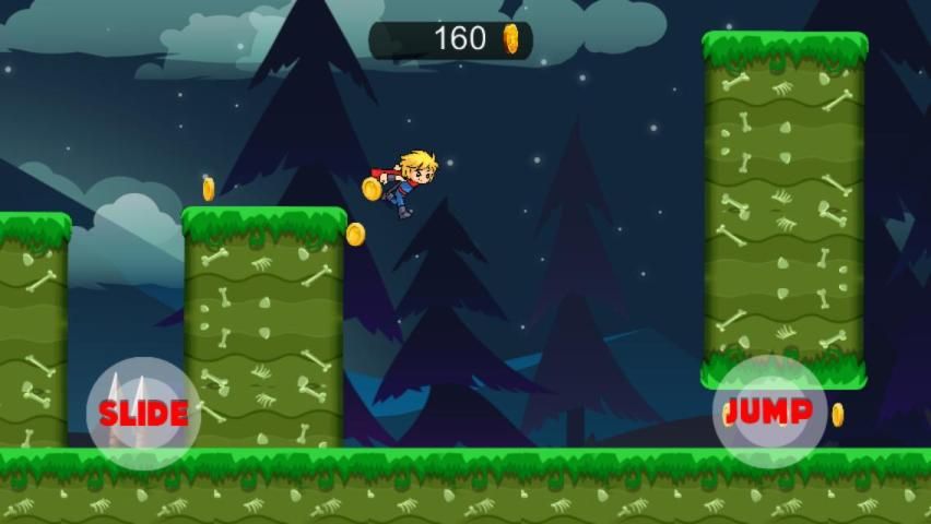 Dalam petualangan super ini, Kontrol anak laki-laki untuk berlari, melompat dan menerkam rintangan.