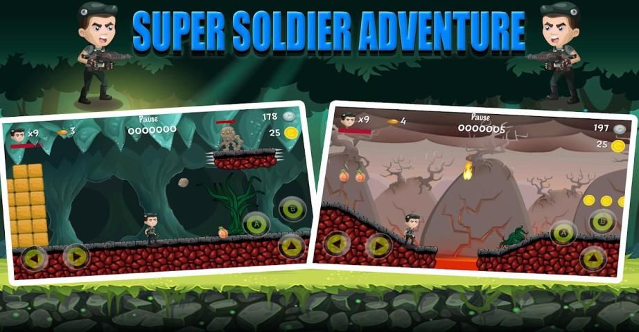 Super Soldier Adventure Game Free Action-nya, nikmati lari melalui misterius, jadilah yang selamat untuk mencapai level terakhir, Lari, lompat dan bertarung dengan banyak musuh.