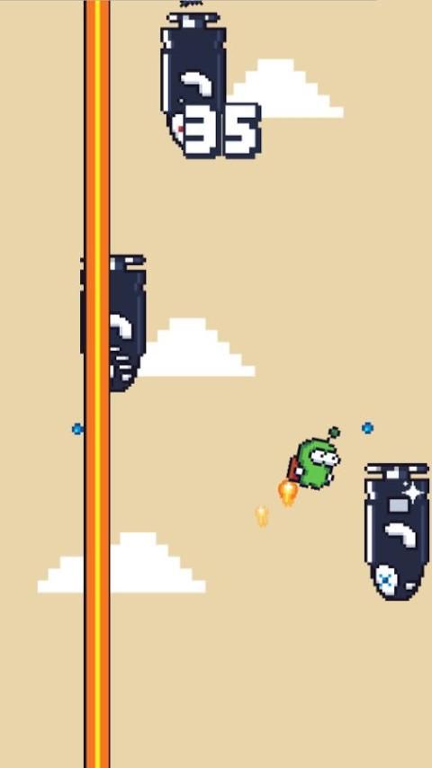 Our Hero fly a powerful jet-pack, but maneuvering is not easy.