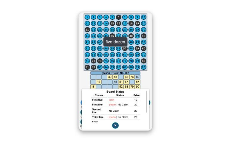- Instant claim calculation, organizer don’t have to match the patterns with the board.