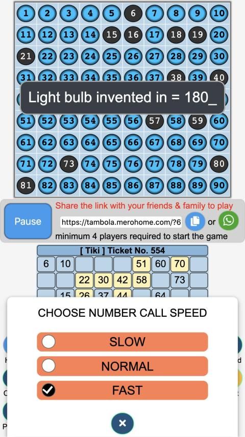 - Permainan dapat dimainkan melalui aplikasi atau hanya dengan mengunjungi https://tambola.merohome.com.