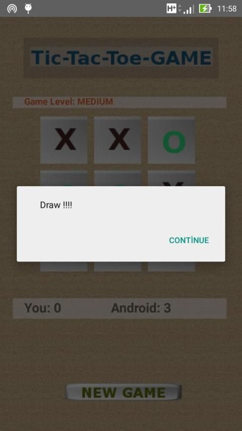 Enjoy playing the classic game of Tic Tac Toe on your Android device. Super Tic Tac Toe game support one player so you can against android device. The game includes three difficulty levels easy, medium, hard. You can select level that match your skill. There is no banner adevertising. Get Super Tic Tac Toe now and let the fun begin.