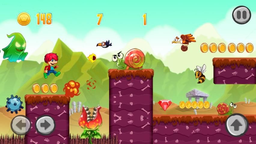 Memanjat gunung besar dan tangga, melawan musuh prasejarah, menghindari jatuh batu bata, menemukan blok tersembunyi dan tingkat, mengumpulkan koin dan berlian, berenang melalui laut yang berbahaya, mengeksplorasi banyak menantang dan adiktif dunia hutan dan lahan dan mengalahkan semua musuh yang kejam dan bos .