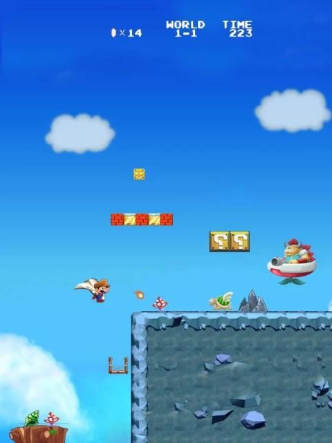 Berlari dan melompat dengan gaya menyelamatkan Princess Peach dari cengkeraman Bowser!