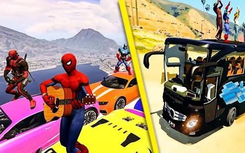 • Mega Super hero bus stunts race of superheroes racing games for bus stunt master.