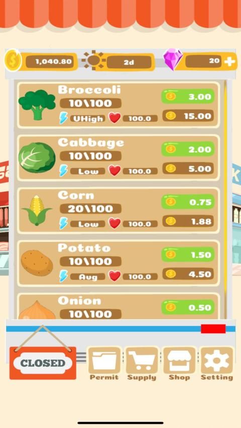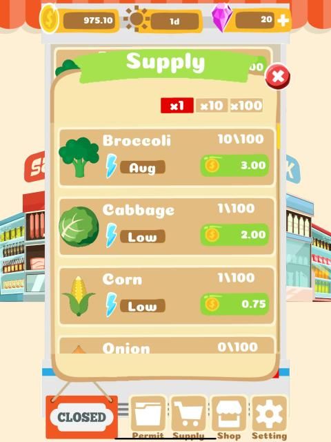 Run a supermarket and grow your revenue. Stock the supermarket with popular items and serve shoppers daily. Boost item popularity and freshness to maximize profit.