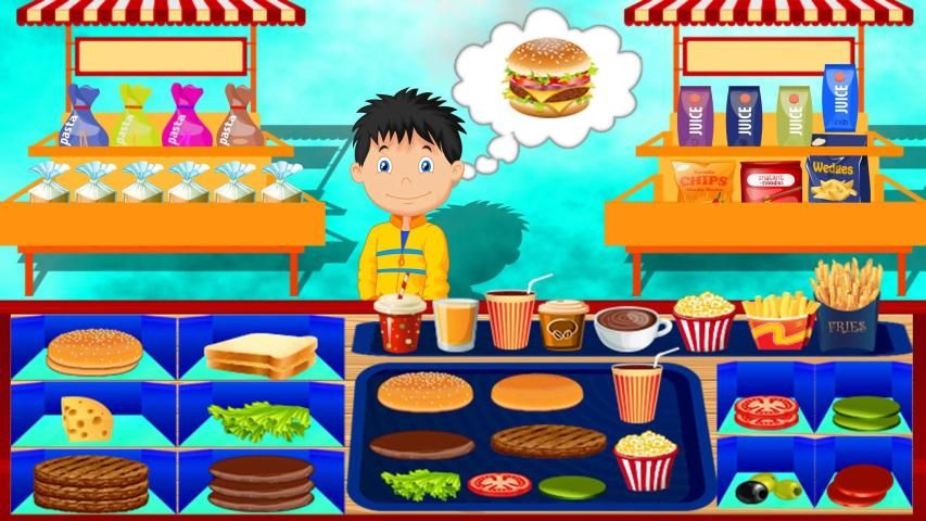 Game berdasarkan restoran food court di supermarket. Makanan sudut tampilan grafis yang sempurna berbaur dengan sentuhan supermarket. Restoran memiliki burger Juicy dengan roti berasap berasap (Chicken, Mutton, beef) dan pizza cheesy parut dalam menu. Rasa segar dengan bawang merah segar, tomat, selada burgers, ditutupi dengan bumbu, acar, jalapenos dan buah zaitun yang mendesis yang membuat pesanan Anda lezat. Sandwich segar dan enak juga disajikan dalam menu dengan roti panini. French Fries dan minuman dingin es dingin yang luar biasa. Anda sebagai kasir harus memiliki pengetahuan lengkap tentang menu Anda.