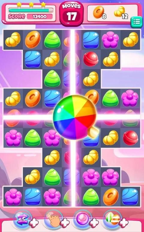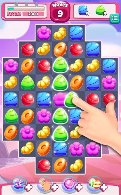 • Pindah dan pertandingan 3 permen dari jenis yang sama meledak dan menang poin.