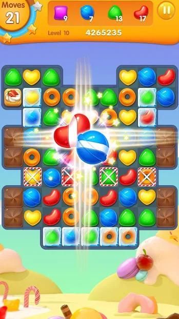 - Hubungkan lebih dari 3 permen sama untuk menciptakan penguat