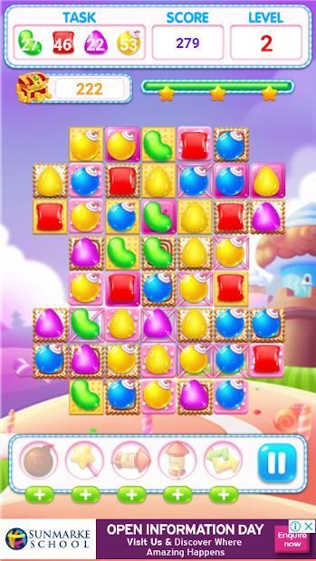 Here we brings you the new challenging game just tap the candies if they are same color together enjoy tapping Sweet candies for fun and good time pass you will love it