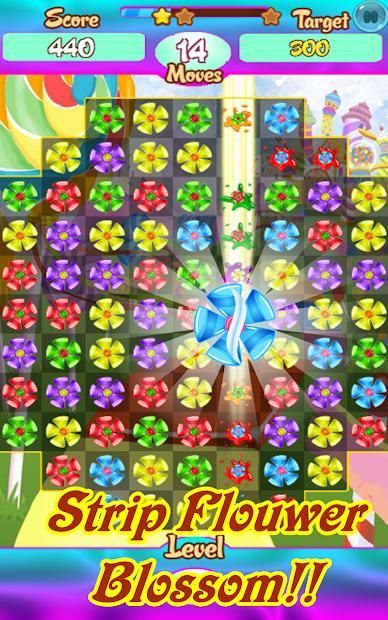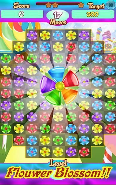 Good Puzzle Match 3 Candy Game for Relaxing in a beautiful and magical flower garden, Use your imagination to create awesome combinations to get magic flower blossom to destroy candy in the game Sweet Flower Quest Match 3 Puzzle.