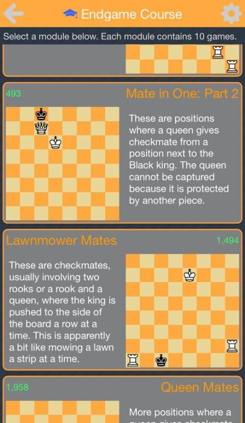 Jika Anda baru untuk catur, atau hanya sedikit berkarat, jangan khawatir. Kami memiliki kursus yang akan memandu Anda pada pembelajaran-kurva stabil dari yang paling dasar dari posisi dan melalui berbagai setup sepotong Anda akan menemukan di endgames. Ingatlah untuk membiarkan keluarga Anda menyelesaikan kursus secara independen pada perangkat bersama dengan menciptakan beberapa pengguna.