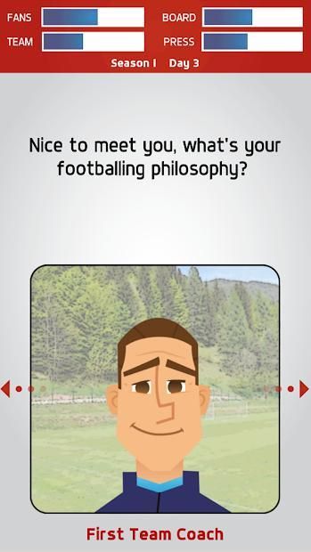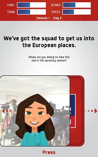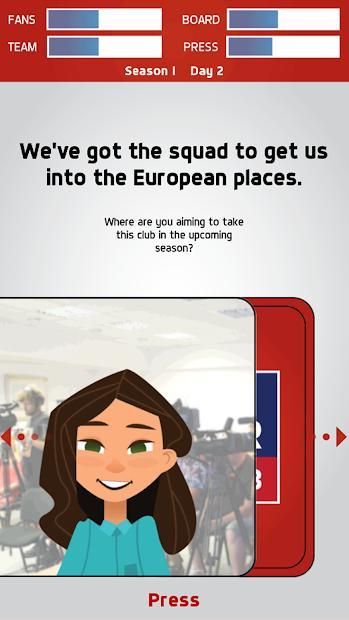 Whether it's dealing with terrible VAR decisions, players going rogue or greedy agents, Swipe Manager: Soccer 2018 is a ‘choose your own adventure’ game where you call the shots. Make all the key decisions via a card dragging mechanic – simply move the card left or right to see your choice of answers and then let go to select.