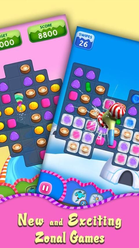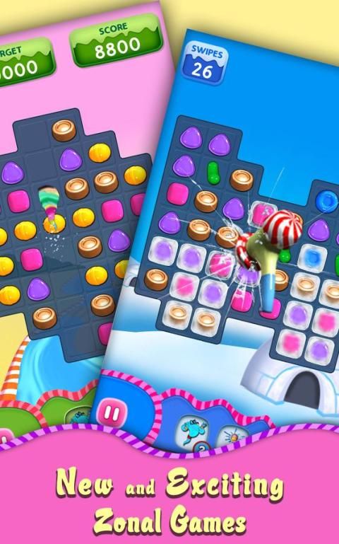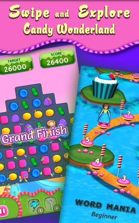 Menggesek teka-teki permen menarik untuk mengeksplorasi menyenangkan ini diisi wonderland petualang!