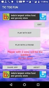 Its Anda berusia tic tac toe permainan tetapi sarat dengan kecerdasan buatan sehingga Anda dapat menantang bot virtual atau u juga bisa bermain dengan teman-teman Anda, tatap muka.