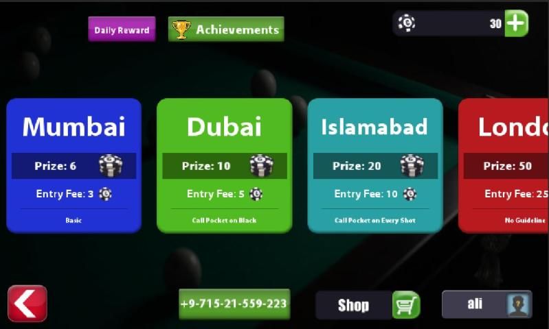 Ambil isyarat dan meja favorit Anda! Di setiap pertandingan multipemain 1 lawan 1 yang Anda mainkan, akan ada Koin biliar TOMAS setiap pertandingan yang Anda mainkan - menangkan pertandingan negara pilihan dan Koin diberikan kepada Anda akun online virtual. Anda dapat menggunakan koin-koin itu untuk memainkan lebih banyak game untuk memenangkan lebih banyak koin atau membeli produk lain seperti isyarat seperti obrolan dll.