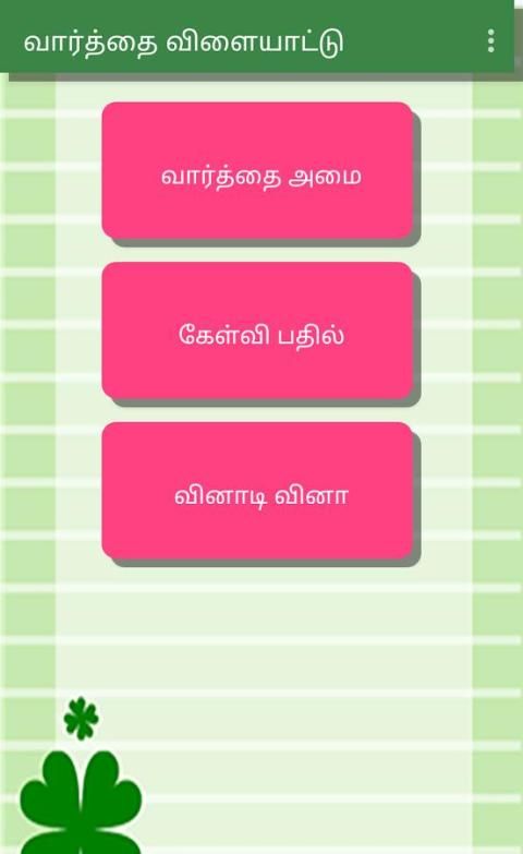 Tamil aplikasi permainan kata adalah kata-kata tamil dengan koleksi teka-teki rumit, pertanyaan, GK kuis dan permainan asah otak.