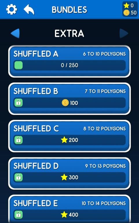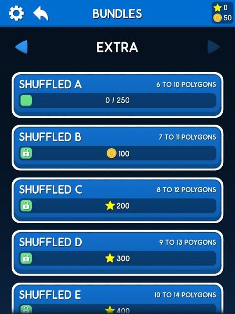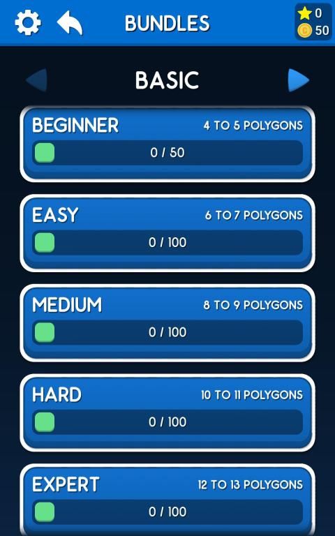 Semua teka-teki berisi rentang 5 hingga 14 poligon sehingga ada teka-teki untuk semua orang.