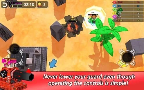 4. Anda dapat memindahkan tangki Anda dengan joystick tak terlihat dan Anda bisa menembak bom yang otomatis dengan memutar arah tangki.