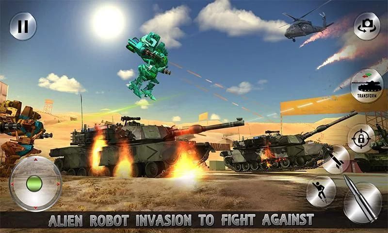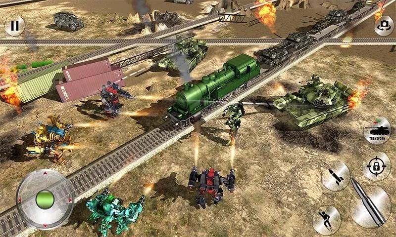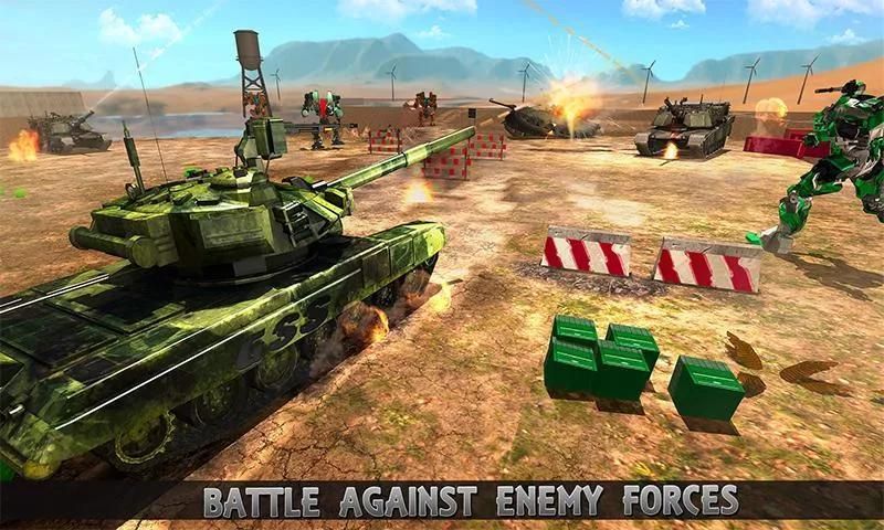 Dalam dunia tangki, kereta bawah tanah di masa depan adalah siap untuk mengangkut senjata tentara untuk unit dasar militer. Sebuah Super cerdas tangki robot pahlawan ini digunakan sebagai prajurit tentara yang bisa berubah menjadi tangki, robot dan sebaliknya. Tentara kereta mendapat diserang musuh yang memulai perang robot futuristik. Tentara kargo harus dipindahkan ke tempat aman ke unit dasar militer di semua biaya tapi futuristik perang robot telah meletus dalam pertempuran mesin api utama. The real tangki pahlawan perlu memukul keras dengan menembak yang intens untuk membasmi pertempuran tank tentara dalam perang tangki. Tangki besi dapat berubah menjadi terbang robot pahlawan untuk membasmi kekuatan tank musuh. Ini adalah salah satu robot epik tank shooting game 2017 di mana terbang robot pahlawan dapat melawan robot masa depan sebagai mekanisme shooter atau bisa melawan musuh dengan serangan tangki mematikan. Nikmati menakjubkan transformasi robot futuristik dalam transformasi Tank Tentara Robot Wars. Perang tank yang sebenarnya dimulai ketika masa pemogokan superhero robot untuk bertahan melawan commader tank dan musuh tank militer.