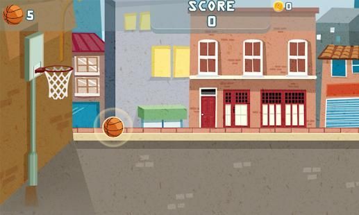 * Tap and drag anywhere on screen to shoot a basketball in the hoops.
