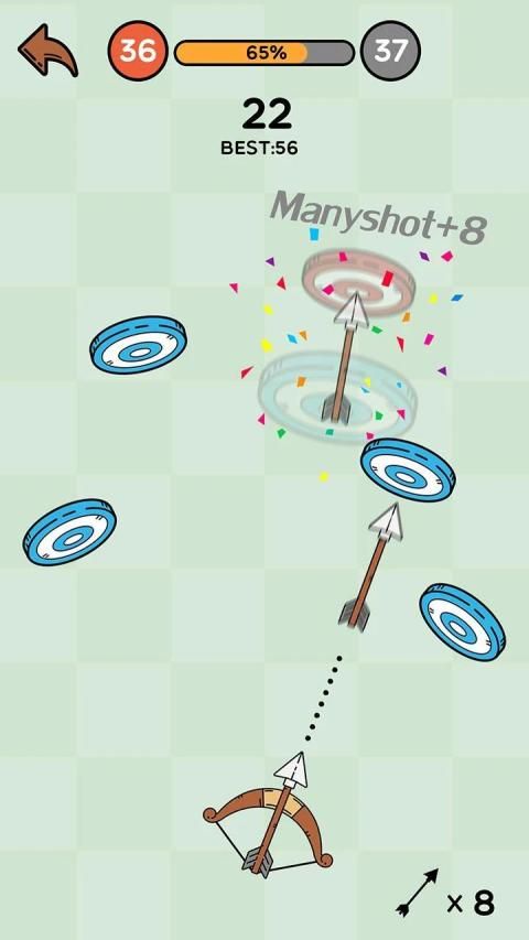 1. Operate even with one finger. Drag the bow to adjust the angle. Release to shoot arrows.
