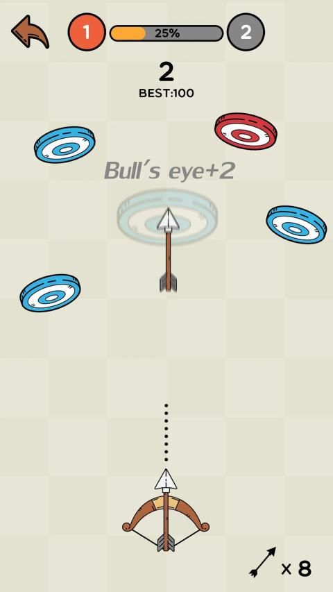 1. Operasikan bahkan dengan satu jari. Seret busur untuk menyesuaikan sudut. Lepaskan untuk menembakkan panah.