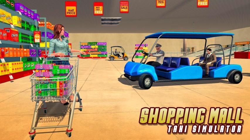 Mengemudikan taksi kereta belanja dari mal ke supermarket untuk mengangkut penumpang dan kargo di dalam supermarket dan memiliki pengalaman kualitas permainan mengemudi taksi dan permainan simulator taksi
