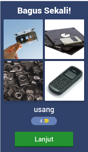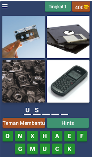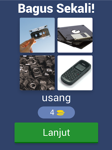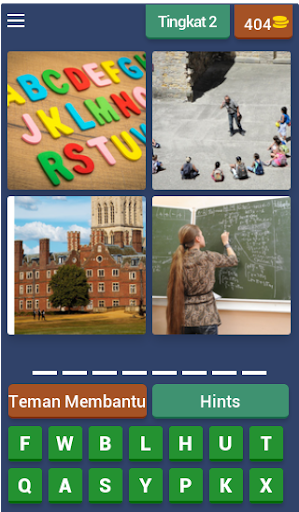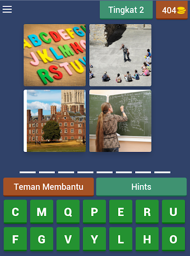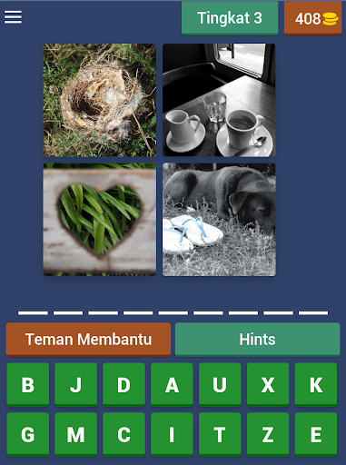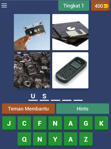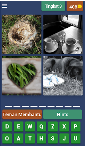 Setiap kata berisikan 3 sampai 10 huruf, tebak dan menangkan. Carilah 4 kepingan dari sebuah gambar yang ada dan terjemahkan menjadi satu kata