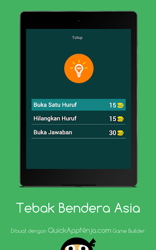 Fitur yang tersedia di dalam game Tebak Bendera Negara di ASIA :