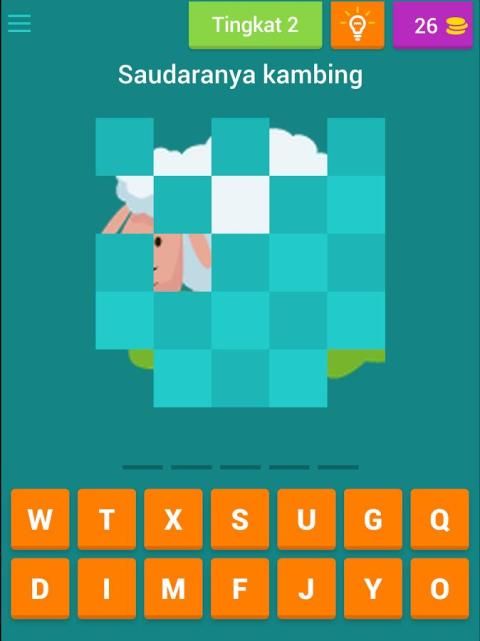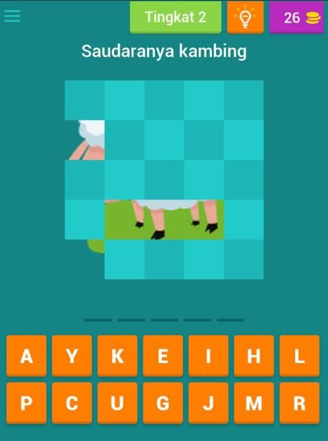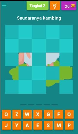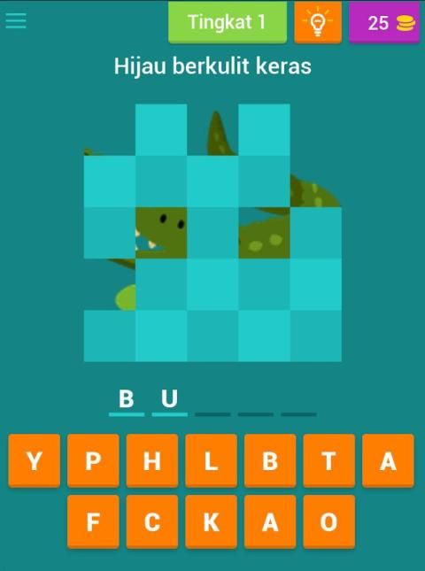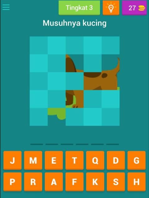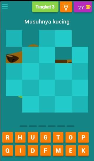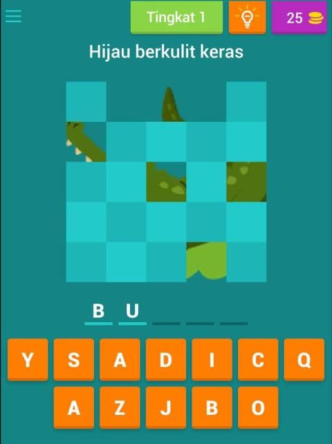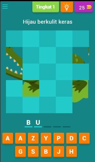 Tebak nama hewan dari gambar yang tertutup oleh kotak-kotak kecil. Perhatikan petunjuk yang ada. Gunakan tombol bantuan untuk menambah petunjuk.