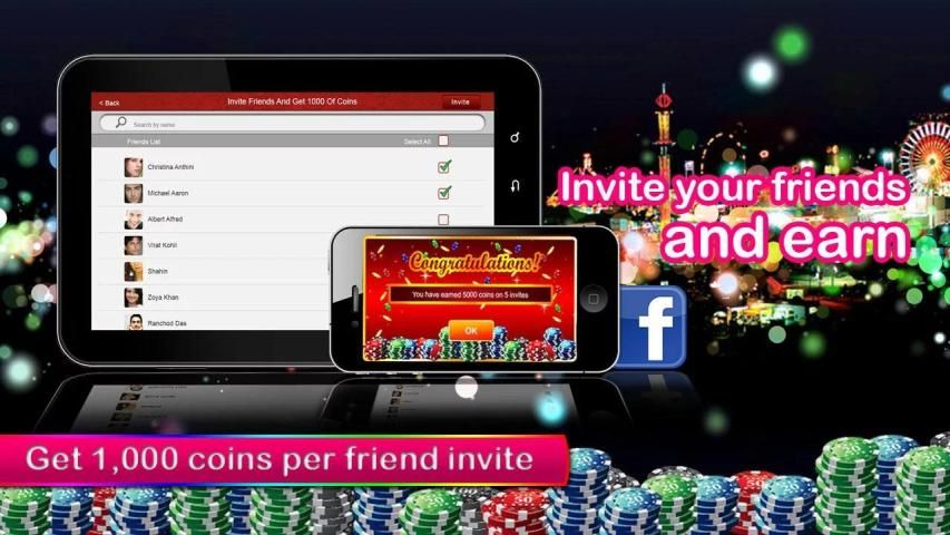 Ajak Teman & mendapatkan: Anda bisa mendapatkan chip gratis tak terbatas hanya dengan mengundang teman-teman Anda untuk bermain dari Facebook. 1000 chip gratis per teman. Anda tidak akan pernah kehabisan uang !!!