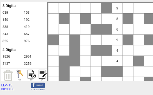 - Tersedia alat bantu yang akan sangat membantu dalam pengisian Teka Teki Silang (TTS) Angka