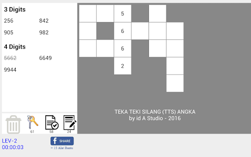 - Level permainan Teka Teki Silang (TTS) Angka tanpa batas.. UNLIMITED