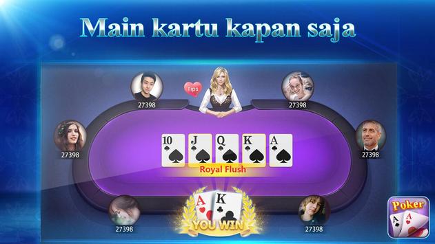 Texas Poker ini cara main asli, Banyak jenis bet, Main bareng JUTAAN pemain lain di waktu luang, Kamu juga bisa berkenalan dengan banyak teman disini. Dalam pusat event, banyak kegiatan berhadiah tungguin kamu ada kesempatan dapatkan koin gratis loh!, Ayo cepat download sekarang! GRATIS!