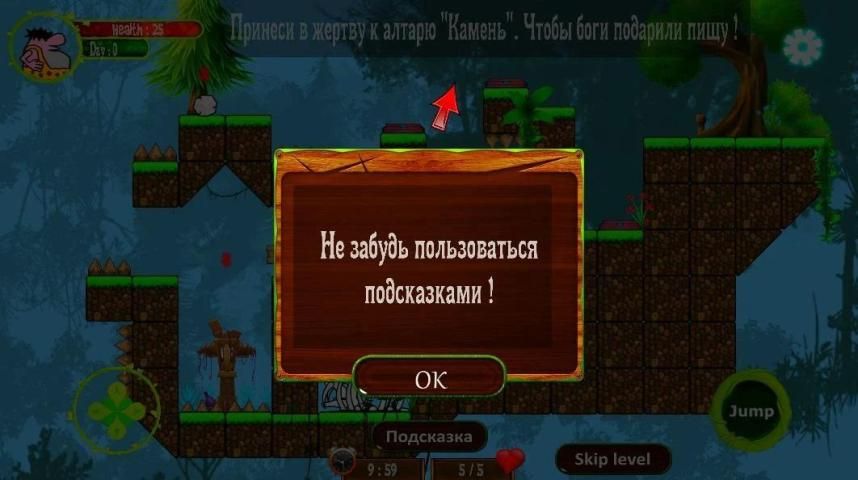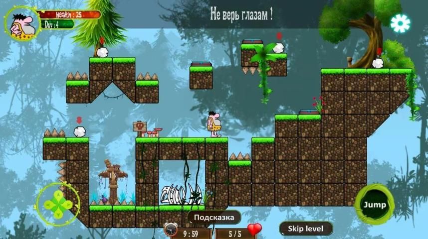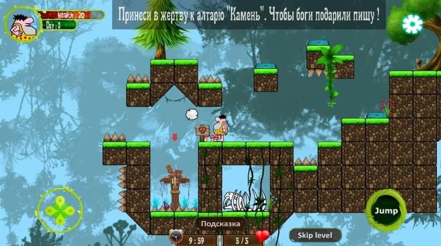 Беги, открывай новые уровни, будь внимателен, не пропускай подсказки!Наслаждайся новыми уровнями головоломок платформеров и загадок в забавном первобытном мире! Получайте бонусы за правильные решениями, избегая шипы, покоряй уровни! Добывай мясо чтобы быть сытым и не терять жизнь! Принимай неординарные решения, прокачай интеллект, думай логически и не сдавайся! Попробуйте пройти уровень снова, другим путем!