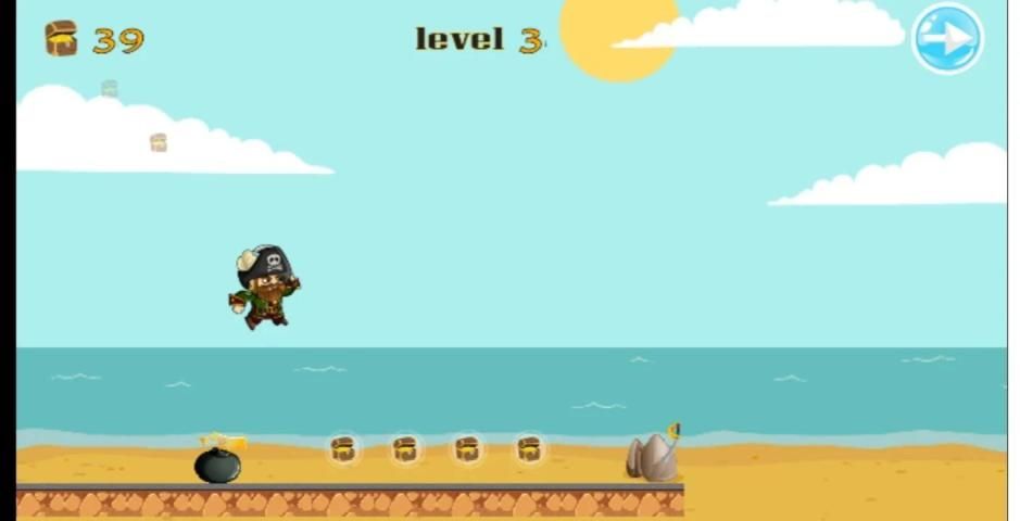 The game process is too easy, the pirate run automatically and collect treasure, avoid killer obstacles to keep the pirate collecting, use the float to realize a long jump over obstacles, Pirate flag causes a change of direction from right to left or the other way around.