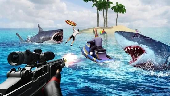 Experience the thrill of shooting and hunting down, the hungry sharks, attacking peoples.