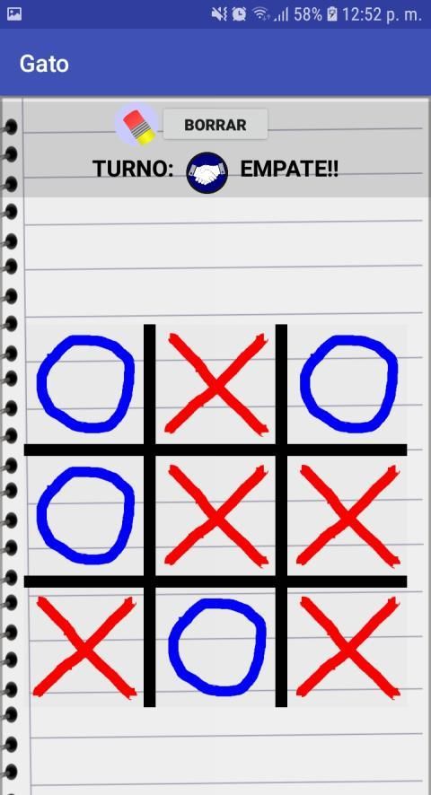 Ini adalah sebuah aplikasi di mana Anda dapat memainkan permainan tradisional Tic Tac Toe (GATO dalam bahasa Spanyol).