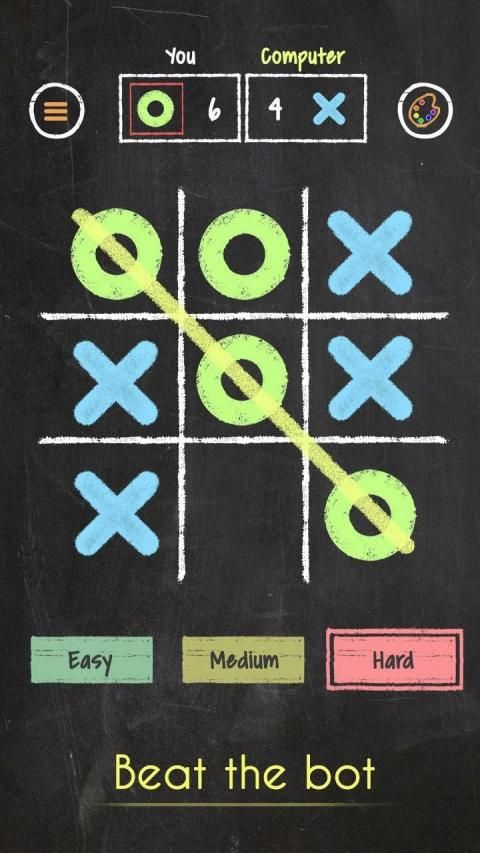 This Classic game of Tic Tac Toe has 1 player (Player vs Android), 2 Player (Offline & Online). Our best puzzle game Tic Tac Toe AI innovates its moves. This classic game comes in the beautiful blackboard and neon theme.