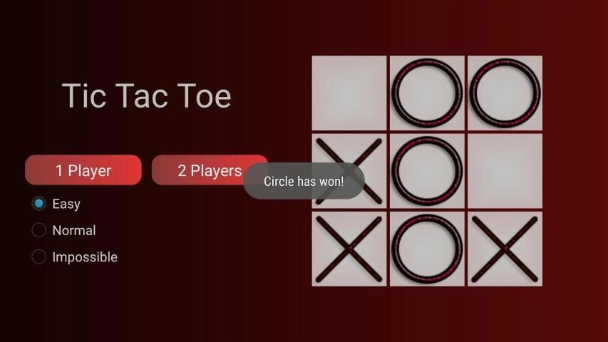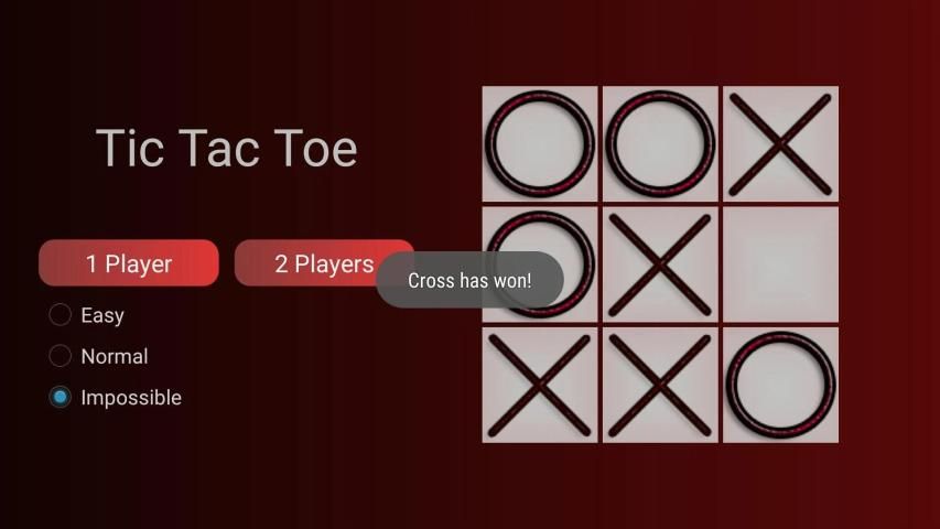 Each player has their own mark, wich can be either O(noughts) or X (crosses), and the game it's won by the first player who places three circles or three crosses in a straight line. It has 3 levels of difficulty and you can play it with your friends!