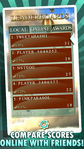 An addictive new steampunk styled word game for the android.Last Castle Games presents its debut title, TickTockText Beat your best scores, unlock achievements, or compete against other players on the online leaderboards. Featuring 4 unique game play modes with varying levels of difficulty, this game is both fun and challengingAdsupported version please let me know if ad frequency is too much : Gameplay requires English LanguageFeatures:4 unique modesFun and addictive gameplayEyecatching graphics32 Unlockable AchievementsOnline and Local ScoresPractice ModesGame modes:Classic:The clock is ticking, as you race to form as many words as possible.Be sure to grab bonuses and time extensions to help you along the wayDynamite:See how many rounds you can last before the bomb goes off Select letter tiles to fill in the missing spaces to form words in a race against time.Puzzle Box:How long it will take you to solve the puzzle? Swap letter tiles around to form words in this challenging mode.Bubble:Chain together bubbles to form words. Used bubbles pop while those lower float upwards. Words formed from samecolored bubbles award bonus points