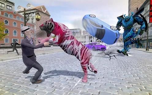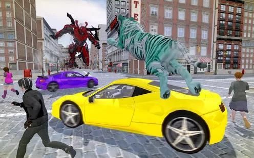 Anda robot transformasi harimau memiliki mata harimau biru yang mengatur rasa takut di antara musuh-musuhnya ... mata harimau biru Anda cukup untuk membuat mengubah musuh robot hewan Anda lari dari Anda mengklaim Anda raja nyata dari hutan.