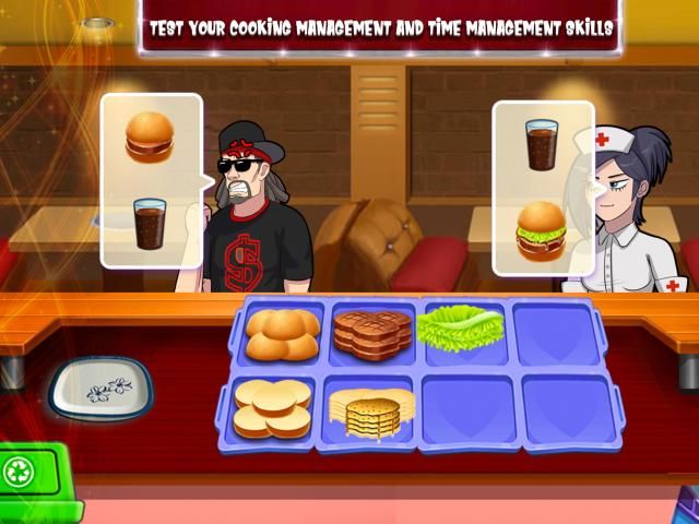 Bersiaplah untuk tantangan pembuatan burger dan menangani pelanggan dengan manajemen waktu yang tepat.