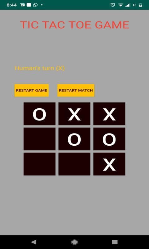 Tik Tac Toe - Gim pikiran adalah gim yang lama dan mudah dimainkan. Ini sangat sederhana sehingga akan membantu menyegarkan kembali stres pikiran. Ini memiliki mode putar otomatis sehingga pengguna tunggal dapat bermain dengan komputer sebagai lawannya. Game Tik Tac Toe juga memiliki 2 mode pemain sehingga dua pemain bisa bermain secara bersamaan. Kami juga memiliki tipe turnamen sehingga jumlah game dapat ditentukan oleh pengguna.